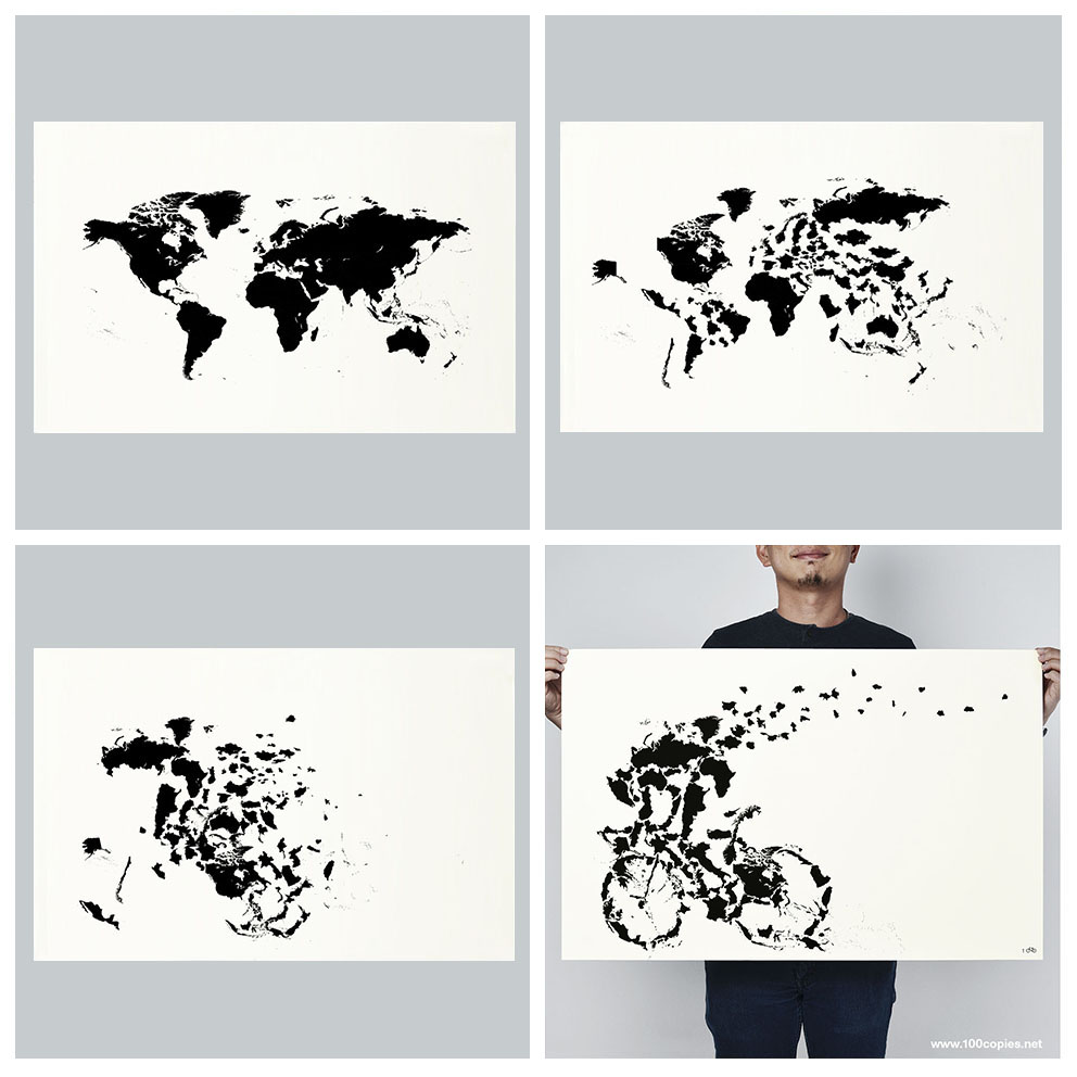 Tour de World has been painstakingly created by using the geographical boundaries of various countries and creatively reorganizing them to form the silhouette of a cyclist.